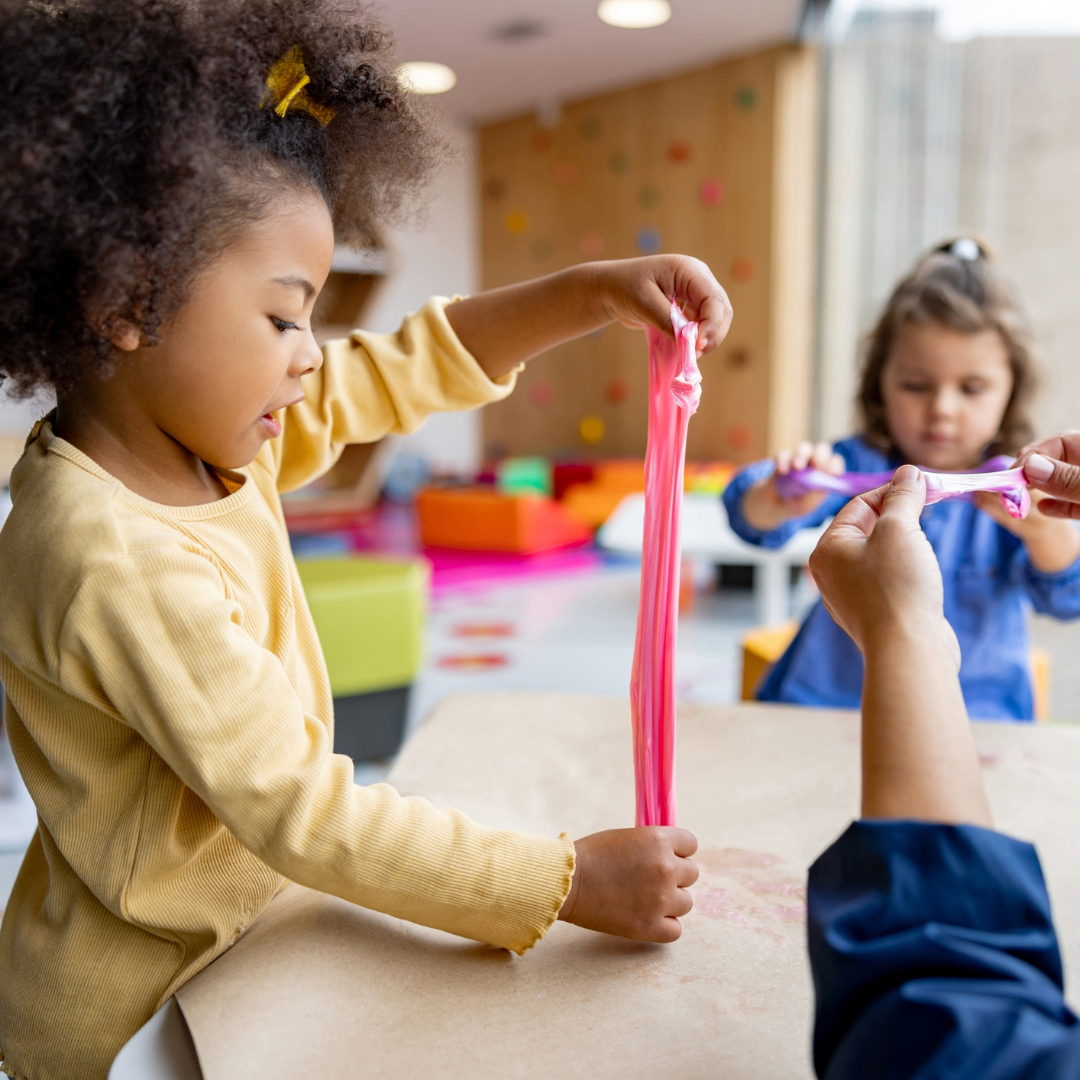 Podes, por exemplo, criar um slime caseiro misturando cola branca, água e bicarbonato de sódio, depois adicionas um corante alimentar de uma cor a gosto e um pouco de solução de lentes de contacto.