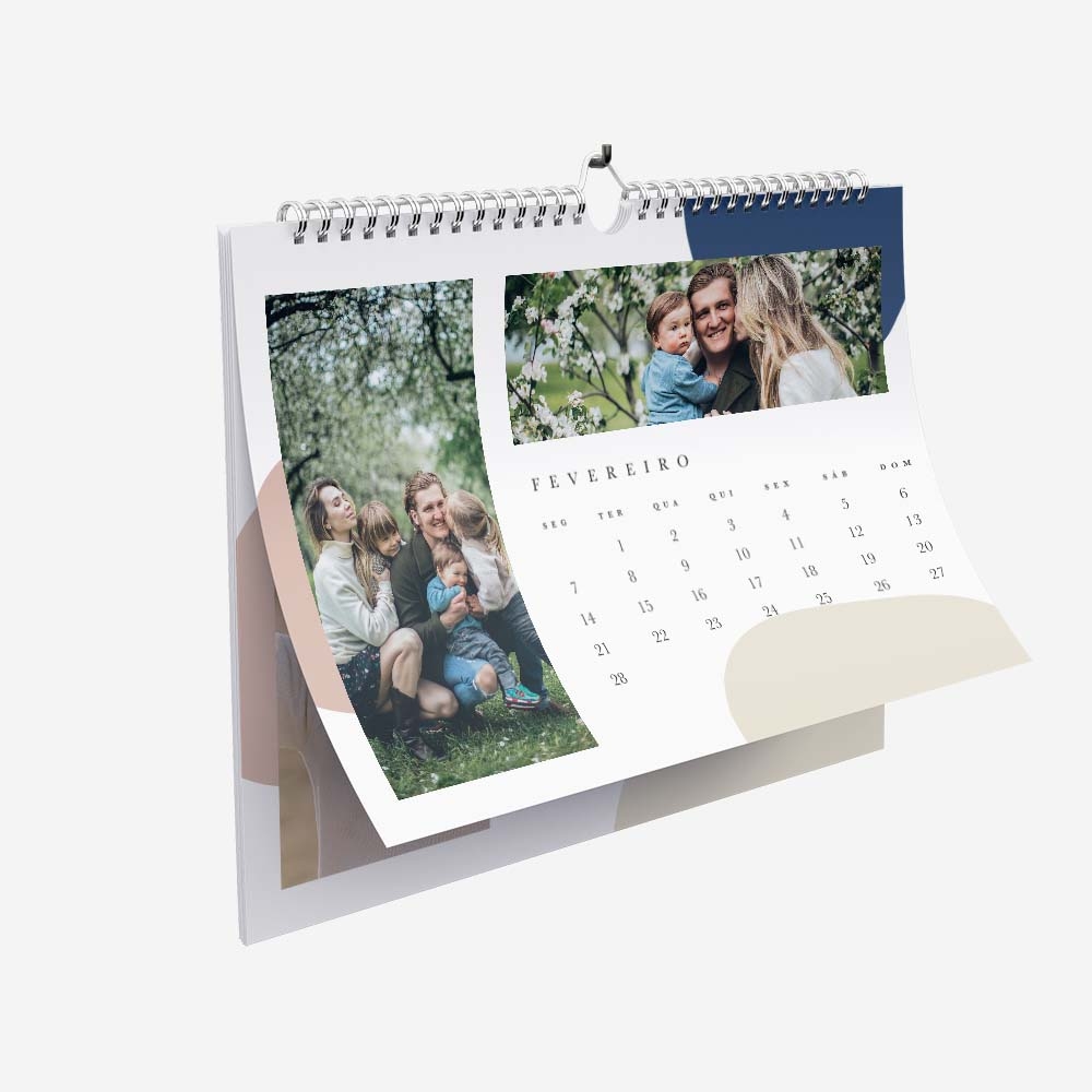 Os Calendários são impressos em papel couché de alta qualidade, com um acabamento em matte. Este tipo de impressão irá proporcionar uma imagem nítida com cores vivas e intensas, o que confere ao teu calendário uma maior durabilidade.