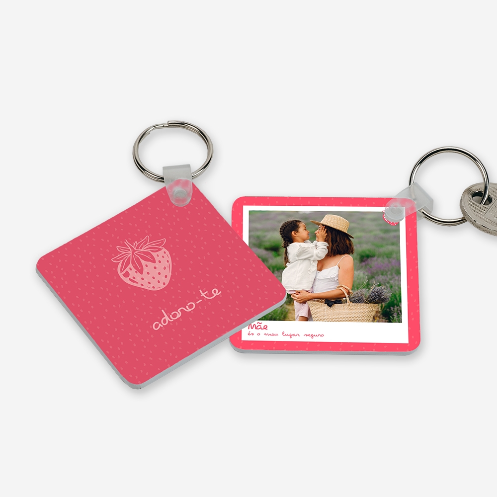 Com formato quadrado e personalização total (100%) em ambas as faces, este porta-chaves transforma qualquer foto ou frase num presente romântico e inesquecível.